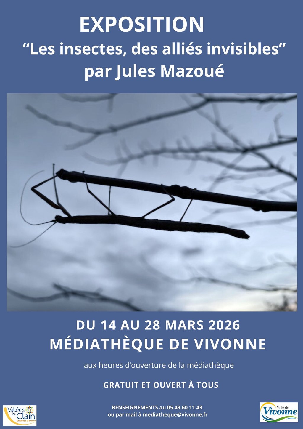 Venez en apprendre plus sur les insectes à travers une exposition de photographies de Jules Mazoué présentes à la médiathèque du 14 au 28 mars.
